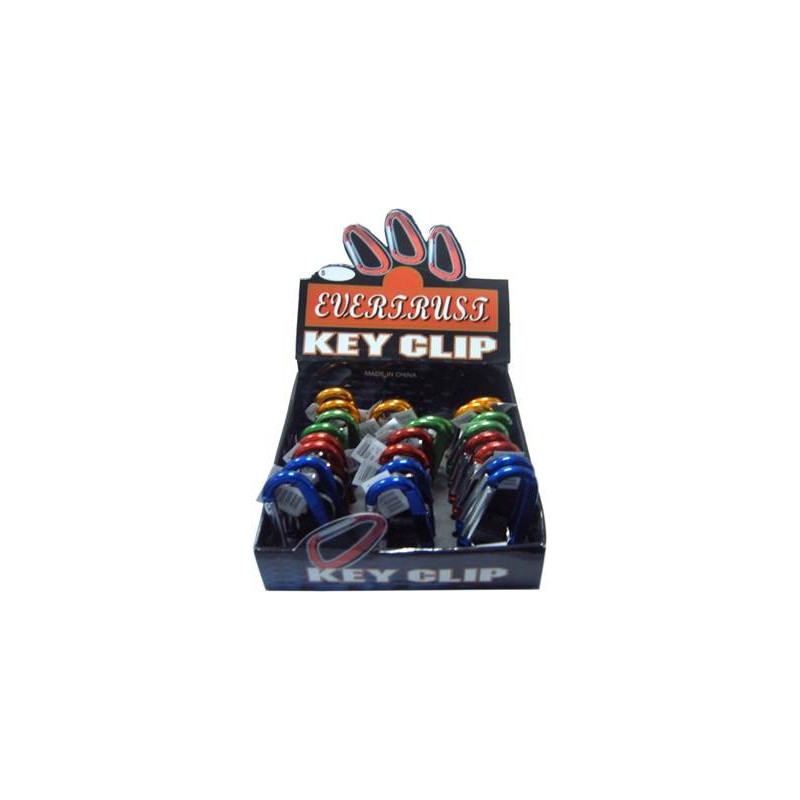 Moschettone grande in lega leggera con anello e fettuccia, in espositore da banco.